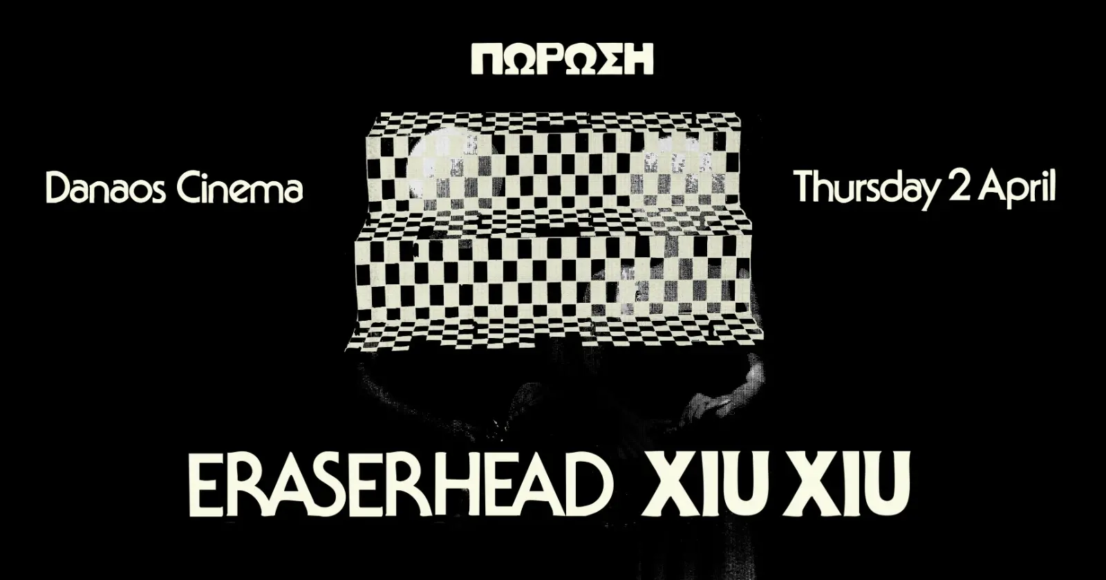 Οι κάτοχοι εισιτηρίου Eraserhead Xiu Xiu θα λάβουν προσωπικό εκπτωτικό κωδικό για να παρακολουθήσουν, αν το επιθυμούν, την προβολή Eraserhead στην ειδική τιμή των 5 ευρώ.***
