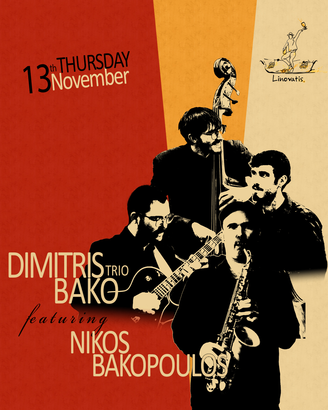 Στην καρδιά της Κηφισιάς, το κομψό bistrot Ληνοβάτης φιλοξενεί ένα μουσικό ταξίδι που μεταφέρει την ατμόσφαιρα της τζαζ της Νέας Υόρκης στην Αθήνα. Ο κιθαρίστας και απόφοιτος του Prince Claus Conservatory της Ολλανδίας, Δημήτρης Μπακόπουλος, με ενεργή παρουσία στη διεθνή μουσική σκηνή, παρουσιάζει ένα σταθερό μουσικό ραντεβού κάθε Τρίτη και Πέμπτη 8:30-11:30μ.μ. στον φιλόξενο χώρο του Ληνοβάτη.
