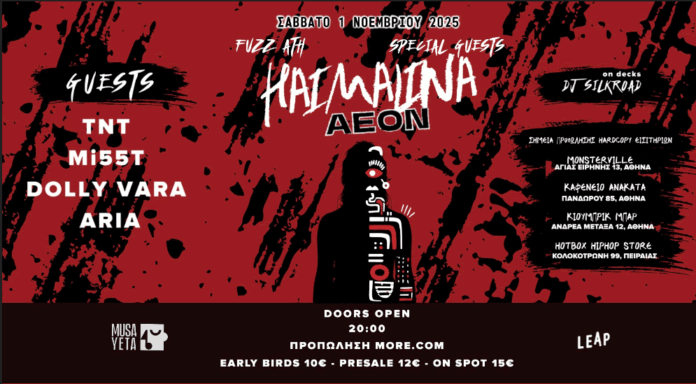 Ο δίσκος «Χαϊμαλίνα», που κυκλοφόρησε από τη LEAP, κουβαλάει έντεκα tracks γεμάτα ατμόσφαιρα, συναίσθημα και δυνατές συνεργασίες. Κομμάτια όπως τα «Kaukos», «Takadimi», «Μόρτισσες» και «Flowqueen» δείχνουν γιατί η AEON θεωρείται μία από τις πιο αυθεντικές φωνές της νέας γενιάς: στίχοι που μιλάνε κατευθείαν, beats που σπάνε και vibes που μυρίζουν αλήθεια.