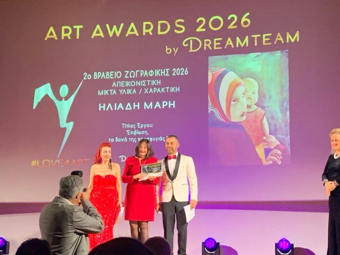Η εικαστικός Μάρη Ηλιάδη τιμήθηκε με το 2ο Βραβείο Ζωγραφικής στα Art Awards 2026, στο πλαίσιο της επιτυχημένης διοργάνωσης Dream Team #Love4Art#, η οποία τελεί υπό την αιγίδα του Υπουργείου Πολιτισμού.