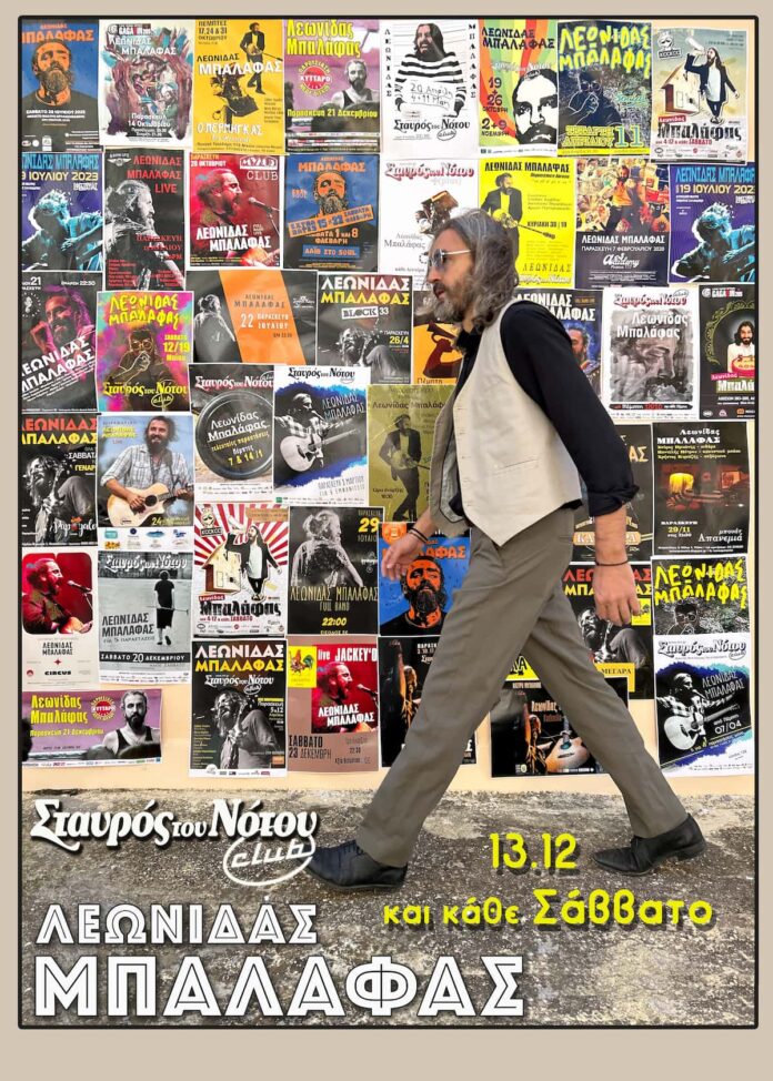 Ο Λεωνίδας Μπαλάφας, ένας από τους πιο ιδιαίτερους και χαρισματικούς τραγουδοποιούς της γενιάς του, επιστρέφει στο γνώριμο, ζεστό περιβάλλον του Σταυρού του Νότου Club για μια σειρά παραστάσεων, από το Σάββατο 13 Δεκεμβρίου και κάθε Σάββατο.