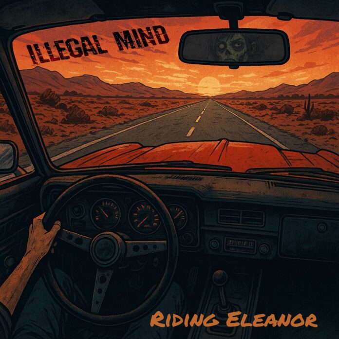 Οπτικά, το “Riding Eleanor” ταιριάζει απόλυτα στην εξελισσόμενη ιστορία των Illegal Mind. Το εξώφυλλο του single, σε στυλ κόμικ, δημιουργήθηκε μέσω της σύλληψης της τεχνητής νοημοσύνης και ολοκληρώθηκε με την πινελιά του Photoshop από τον Maxx – σκληρό, DIY και γεμάτο πολυεπίπεδη σημασία. Κοιτάξτε προσεκτικά και θα εντοπίσετε ένα κρυμμένο κορίτσι-ζόμπι, που παραπέμπει σε προηγούμενες κυκλοφορίες και την διασυνδεδεμένη αφήγηση της μπάντας για την ερημιά. Δεν υπάρχουν φανταχτερά μουσικά βίντεο ή μεγάλες περιοδείες. Αντίθετα, ο Maxx επιλέγει ασπρόμαυρα οπτικά teasers, ψηφιακά zines και αισθητική survival-kit που αντανακλά τις underground ρίζες της μουσικής.