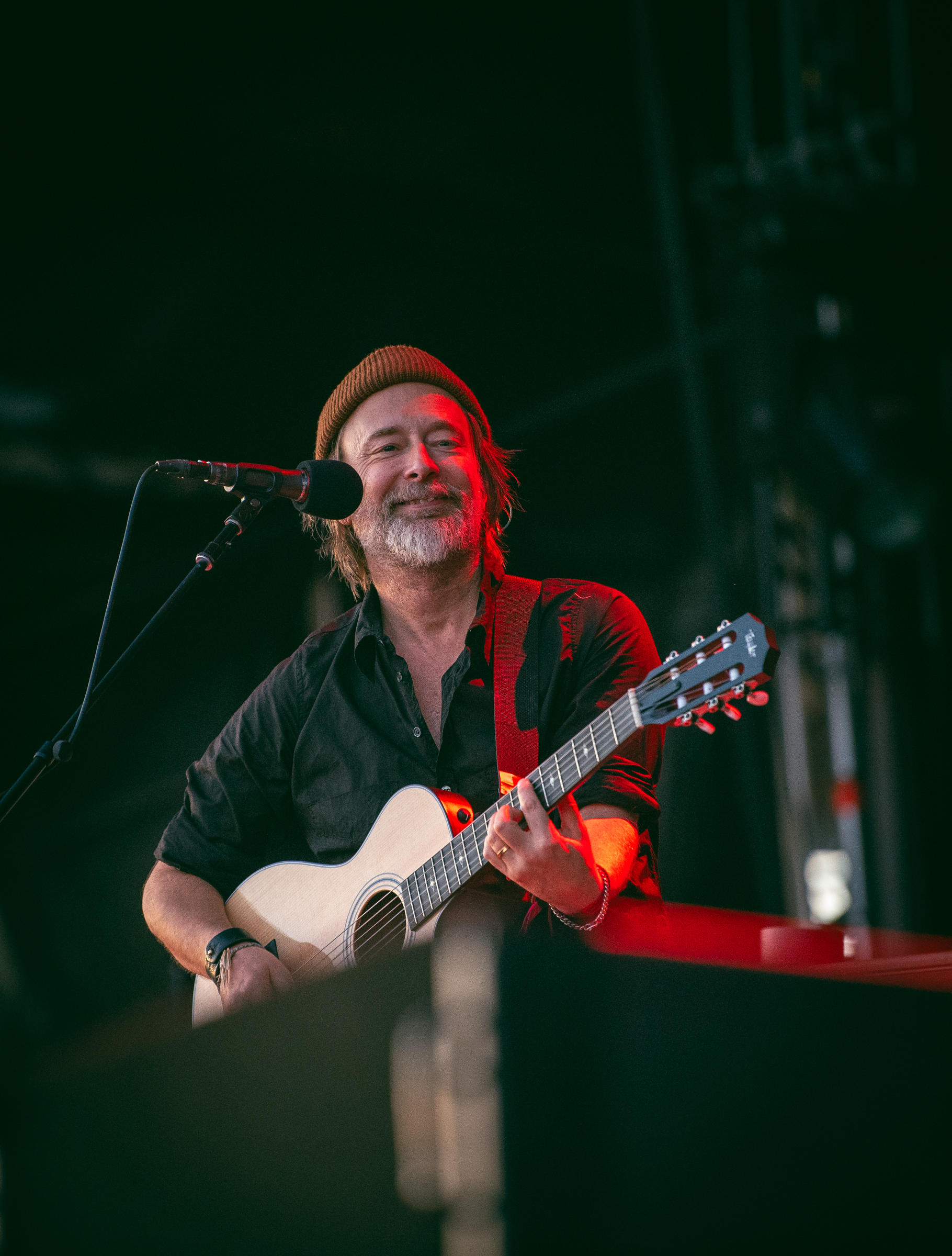 Λίγα λεπτά πριν τις 21:00, με τον ήλιο να δύει, ο Thom Yorke με τον Jonny Greenwood έκαναν την είσοδό τους ως The Smile, προκαλώντας… γηπεδικές αντιδράσεις από το κοινό που έβλεπε στη σκηνή τα δύο βασικά μέλη των περίφημων Radiohead, μετά από πολλά χρόνια. Μαζί με τον εκπληκτικό ντράμερ Tom Skinner και τον σαξοφωνίστα -και όχι μόνο- Robert Stillman, πρόσφεραν ένα σετ που πέρασε από δεκάδες μουσικά είδη, αποκαλύπτονας μπροστά μας μια μπάντα απόλυτα αφοσιωμένη και την ίδια στιγμή απελευθερωτική.