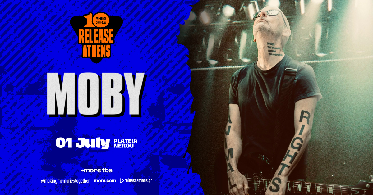 Το Release Athens 2026 υποδέχεται τον Moby, την Τετάρτη 1η Ιουλίου, στην Πλατεία Νερού. Ο Αμερικανός superstar, μια από τις πιο σημαντικές και δημοφιλείς προσωπικότητες της ηλεκτρονικής μουσικής (και όχι μόνο), επιστρέφει δυναμικά στις περιοδείες και την παγκόσμια μουσική σκηνή, υποσχόμενος ένα show γεμάτο με τις μεγαλύτερες επιτυχίες της τεράστιας καριέρας του.