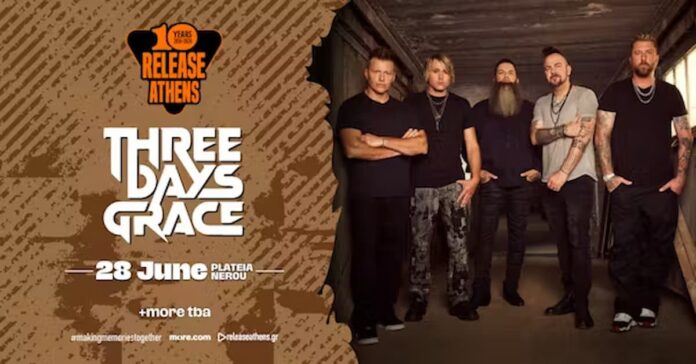 Το Release Athens 2026 υποδέχεται τους Three Days Grace, την Κυριακή 28 Ιουνίου, στην Πλατεία Νερού. Οι Καναδοί, μια από τις υπερδυνάμεις του σύγχρονου alternative metal/rock, επισκέπτονται για πρώτη φορά την Ελλάδα, έτοιμοι να προσφέρουν ένα από τα πιο εκρηκτικά και συναισθηματικά φορτισμένα shows του ερχόμενου καλοκαιριού.